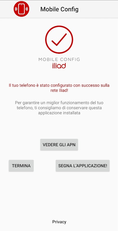 يسمح هذا التطبيق بإعداد الوصول إلى الإنترنت ورسائل الوسائط المتعددة لمستخدمي Iliad المحمول من إيطاليا.