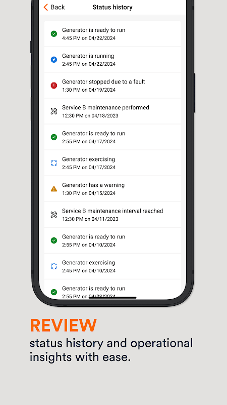 مراقبة الحالة في الوقت الفعلي: قم على الفور بعرض الحالة التشغيلية الحالية للمولد الخاص بك ومتطلبات الصيانة القادمة.