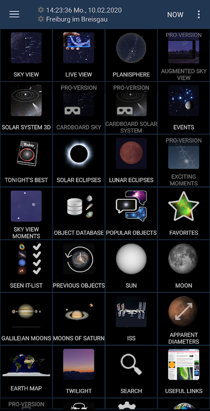 هل تريد معرفة ما إذا كان الكسوف القمري التالي مرئيًا من موقعك أم عندما يكون المذنب الساطع التالي مرئيًا؟ هل ترغب في أن يتم إشعارك بهاتفك الذكي في المرة القادمة ، يجتمع كوكب المشتري والقمر في السماء؟ هل تريد أن تعرف ما هو كائن مشرق الحارقة في سماء المساء؟ هل تريد أن تكون دائما ما يصل إلى تاريخ الأحداث السماوية التي تظهر من موقعك؟ ثم هذا التطبيق أمر لا بد منه بالنسبة لك!
