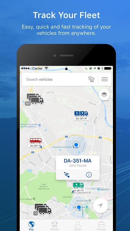 يمكنك عرض كل ما تبذلونه من المركبات التي توجد فيها، ما هو سرعة وما تقوم به (الحالة). يمكنك عرض واحد أو جميع المركبات على نفس الخريطة.