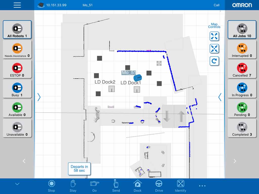 إصدار Omron MobilePlanner Tablet هو أداة سهلة الاستخدام ومحمولة لمراقبة وتحكم روبوتات Omron المتنقلة.