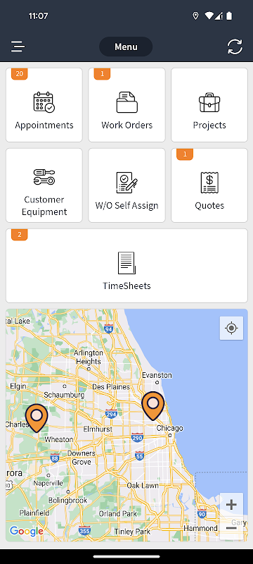 أدخل المصاريف بسرعة أو حدد مكالماتك لليوم والأسبوع. ارسم أوامر العمل والتقويم لأفضل مسار. اضغط على الدبابيس للوصول إلى تفاصيل الموعد.