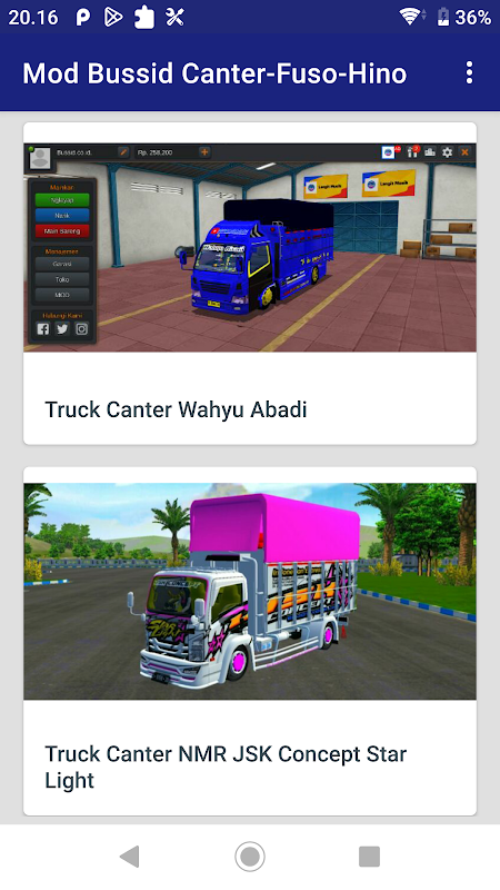 يحتوي هذا التطبيق على مجموعة من تعديل شاحنات Canter و Fuso و Hino لـ Bussid