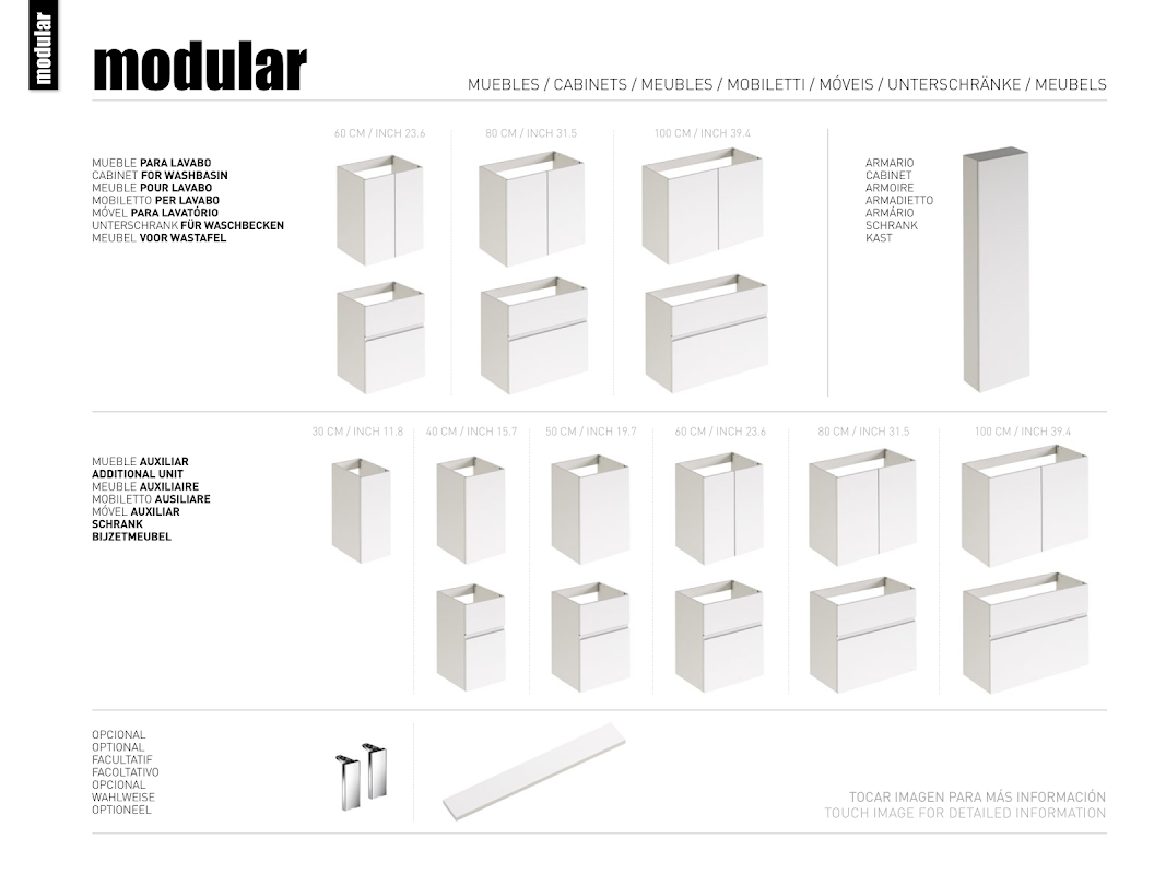 Modular by Cosmic is the smartest and the most flexible solution to organize and storage needs in the bathroom. Surf the application and personalize the unlimited atmospheres to create a bespoke bathroom. You will discover that Modular adapts to different spaces, turning it into a universal collection.