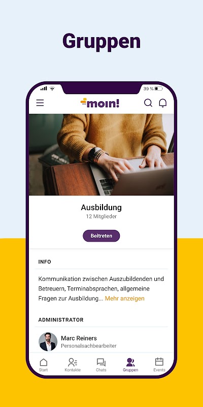 مرحبا! الأمر بسيط. يمكّن دليل المستخدم البديهي المستخدمين الذين ليس لديهم معرفة سابقة بتكنولوجيا المعلومات من القيام بذلك دون أي مشاكل مع moin! للبدأ. بالإضافة إلى البساطة ، ينصب التركيز على الأمان ، لأنه على عكس أدوات الدردشة الأمريكية المعروفة ، فإن البيانات الواردة من moin! في ألمانيا على خوادم حاصلة على شهادة ISO.