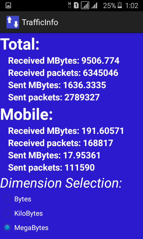 Мониторинг сетевого траффика - приложение для отслеживания сетевого траффика. С помощью данного приложения вы сможете получить информацию о количестве байтов и пакетов, переданных или полученных через сеть.