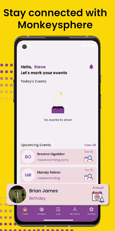 Stay connected to the people who matter most with the Monkeysphere app. Monkeysphere can be personalized to sync with your favorite contacts to send you reminders when it has been too long since you have connected.