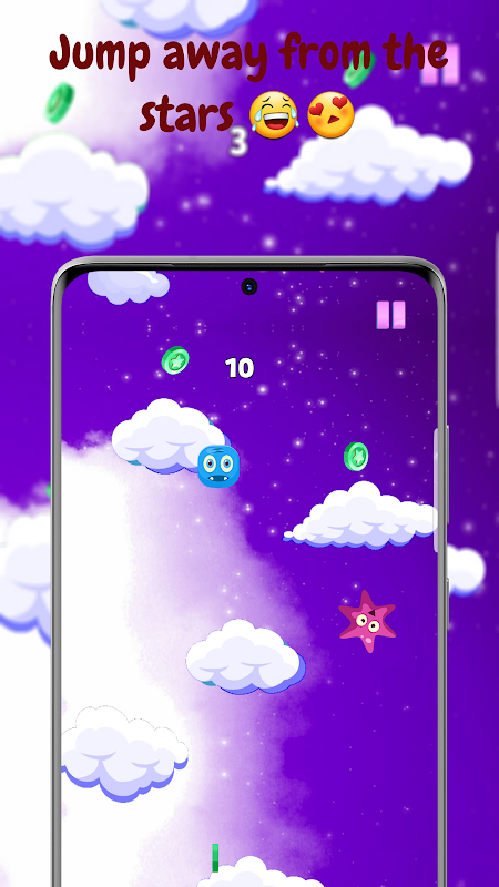 Cloud jumping game with cute monsters are jumps to collect coins and get high score.