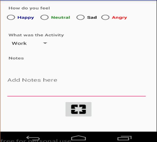 Mood Meter helps to analyse your mood swings and find the dominant emotion, which can be worked upon. Contains a Pie Chart and log record to provide easy access