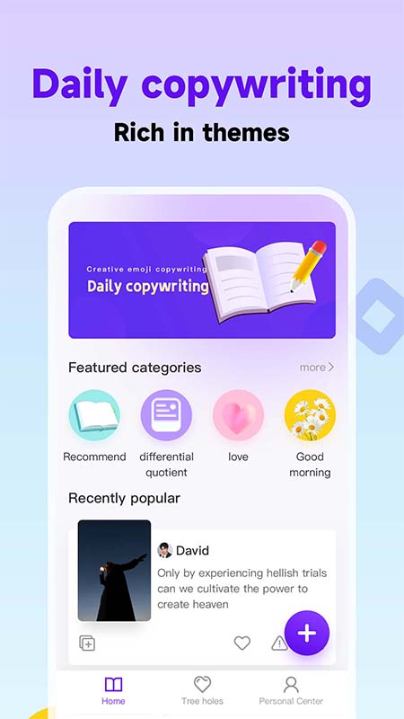2. كتابة النصوص اليومية: ادفع نسخة جميلة كل يوم لتحفيز إلهام المستخدمين وإبداعهم، مع توفير فئات مختلفة مثل العواطف والإلهام والحب وما إلى ذلك، مما يسمح للمستخدمين بالعثور بسهولة على النسخة التي تناسب احتياجاتهم.