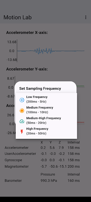يقدم MotionLab طريقة لمراقبة مقياس التسارع والجيروسكوب ومقياس المغناطيسية.