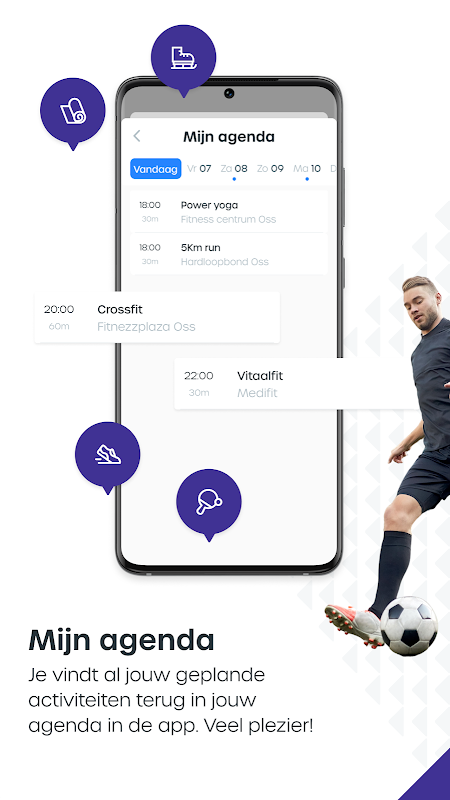مع التطبيق يمكنك مشاهدة جميع عروض الرياضة والتمارين الرياضية في نظام التشغيل بشكل واضح. على سبيل المثال ، يمكنك حجز تدريب شخصي أو تدريب في النادي الرياضي بالمنطقة أو المشاركة في مجموعة للمشي. اختر النشاط الذي يناسبك وحجز مكانك.