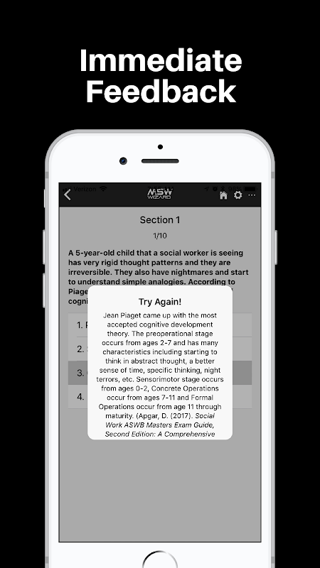 Our app uses scientific strategies to promote learning. Immediate feedback is given for any incorrect response. You won’t need to guess if you got an answer correct or not. If you miss a question, you will be given a detailed explanation of the correct answer, along with a reference of where you can learn more about the topic.