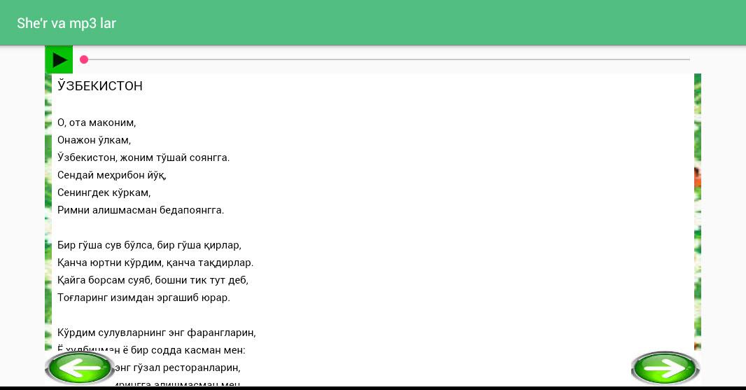 Shuningdek dasturda shoirning o'zi o'qigan she'rlari audio (mp3) fayllari ham joylashtirilgan