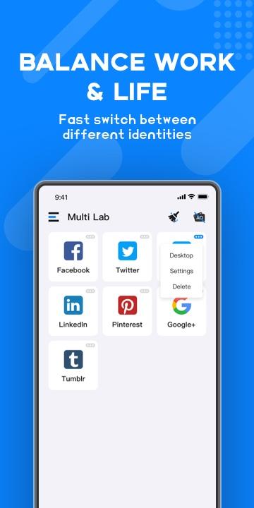 Multi Lab is a multi-tool developed based on the ADocker engine and is perfectly compatible with 64-bit application avatars. It can clone applications to another independent parallel space and easily manage multiple social accounts without interfering with each other.