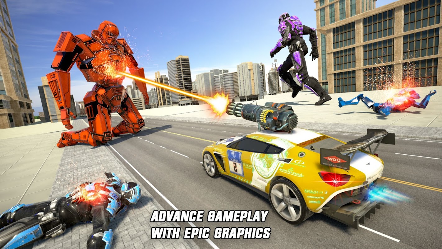 لعبة سيارة الروبوت هذه عبارة عن مغامرة مذهلة لألعاب الروبوتات المتعددة حيث يتم تعيين معركة تحويل الروبوت بين الروبوتات النفاثة والروبوت المحارب. انضم إلى حروب الروبوت في نهاية المطاف مع معركة كبيرة من الروبوتات القتالية لتكون لاعب ألعاب الرماية بالسيارات والروبوتات التي تحول الحروب.
