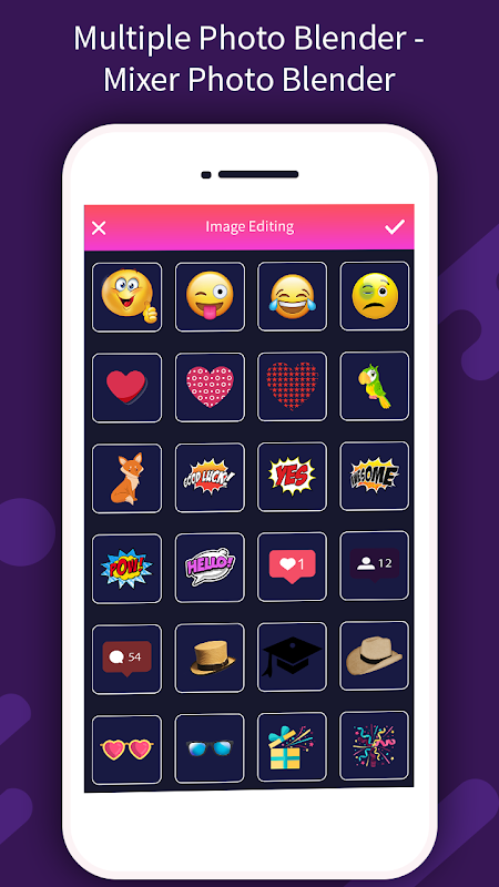 Multiple Photo Blender - Mixer Photo Editor application with converting your image into best blend effects with simple steps. Just select images from mobile gallery and start to decorate it with awesome blend effects. It has also the best collection of amazing effects, filters with your image look more stunning or application also allows users to apply the name with text. Create a more beautiful image with stickers option.
