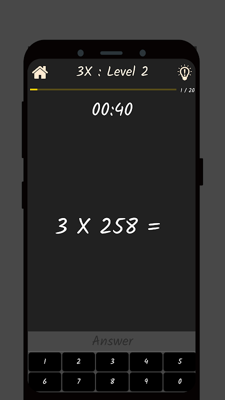 It has unlimited levels, and once you completed with the presented question, the app will automatically take you to the next level. Currently, most of the questions are based on multiplication, but we'll add several types of problems.