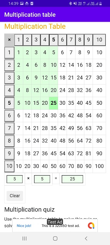 أخيرًا وليس آخرًا ، هناك اختبار الضرب المستند إلى الذكاء الاصطناعي والذي يأتي افتراضيًا في تطبيق التعلم هذا. بمساعدة هذا الاختبار ، سيتعين على الطلاب الإجابة على 10 أسئلة عشوائية في هذا التطبيق وبمجرد تقديم جميع الإجابات ، يمكنهم التحقق من الإجابة الصحيحة على ميزة التحقق من الإجابة في تطبيق تعلم جدول الضرب هذا.
