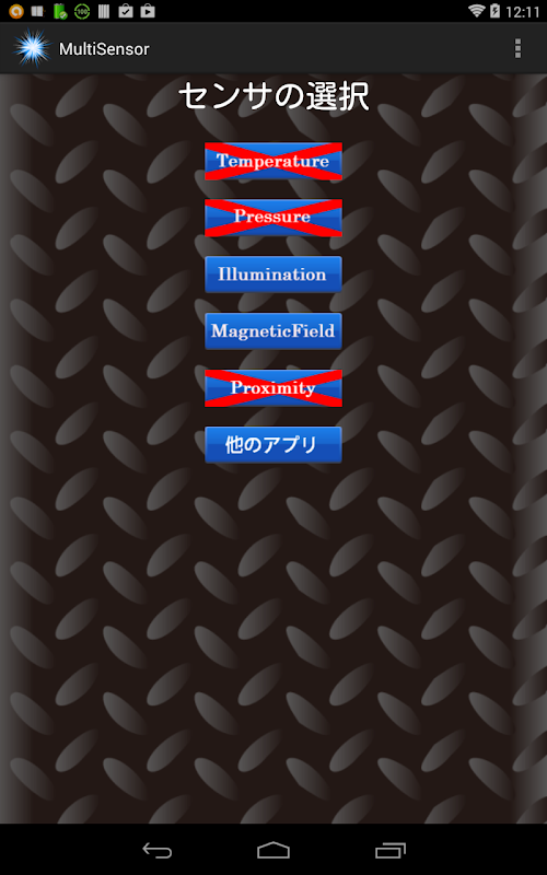 MultiSensorは端末に搭載されたセンサーを使用して、温度、気圧、照度、磁界、端末画面との近接度合いを測ることができます。