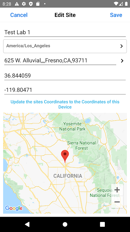 * Edit the site name, time zone, and geographic location