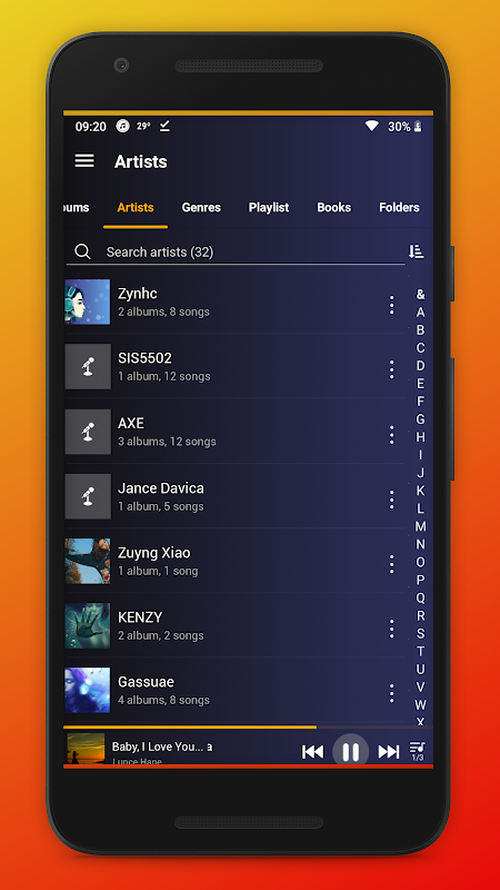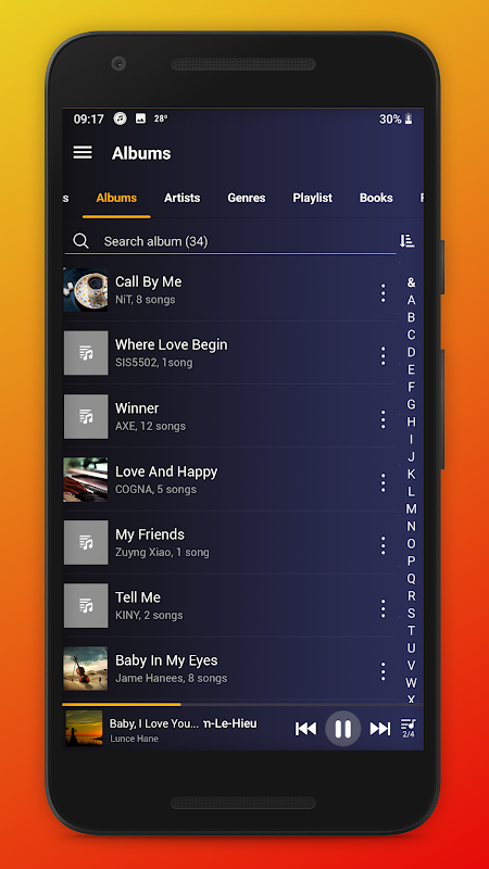 Moloft Music Player lets you manage all your music files quickly and easily .This audio player supports almost all types of mp3 , midi ,wav , flac raw aac files and other audio formats . Easily browse and play music songs by genres , albums , artists, songs and folder.