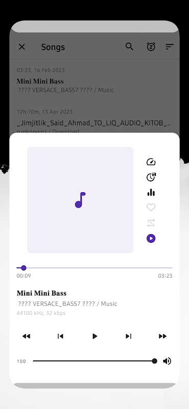 🔀 التبديل والتكرار الذكي: اسمح للتطبيق بخلط قائمة التشغيل الخاصة بك بذكاء أو ضبطها لتكرار مقطوعاتك المفضلة للاستمتاع بالموسيقى التي لا نهاية لها.