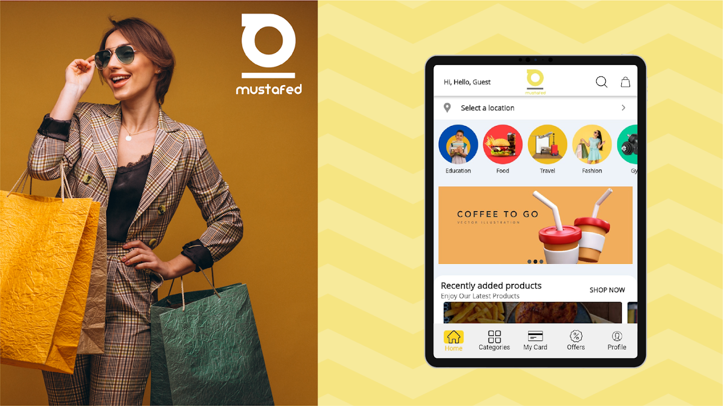 احصل على البطاقة وانطلق مع Mustafed واستكشف مدينتك واحصل على الاتجاهات من خلال التطبيق إلى متاجرك المفضلة.