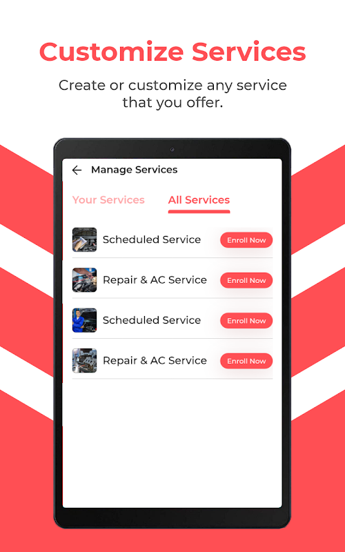 This app is for technicians on the Mvm2Go platform ONLY. Technicians can update profile and upload documents like driving licenses which will be verified by admin. Once admin approves those details will be available. There are some predefined services which technicians can enroll and also set prices. Also Technicians can request new services which admin will approve manually. Technicians would able to see in your services section.