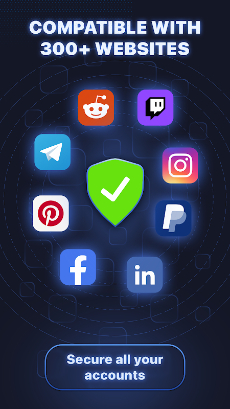 - متوافق مع أكثر من 100 موقع ويب وخدمة تدعم المصادقة الثنائية (Google وFacebook وInstagram وTwitter وAmazon والمزيد)