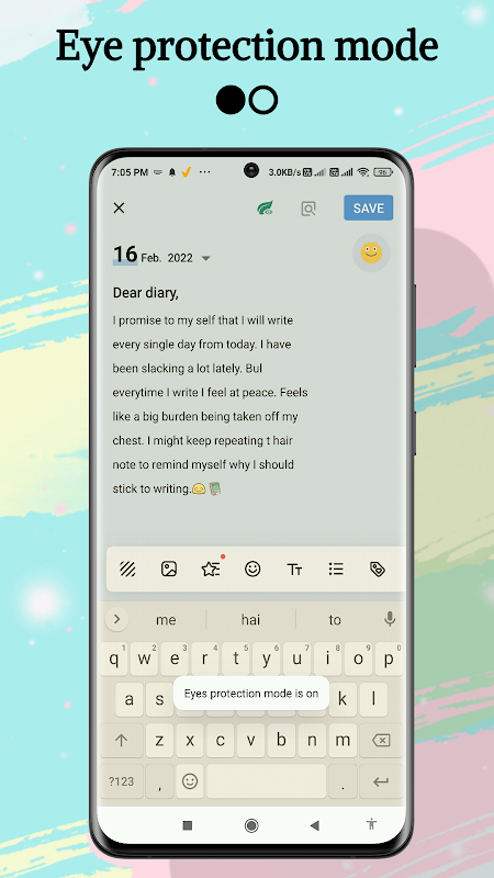 ⭐My Diary Pro - Journal, Diary, Daily Journal with Lock ⭐ eye protection mode. Turn on eye protection mode before writing diaries, you don’t have to worry about writing a diary for too long.