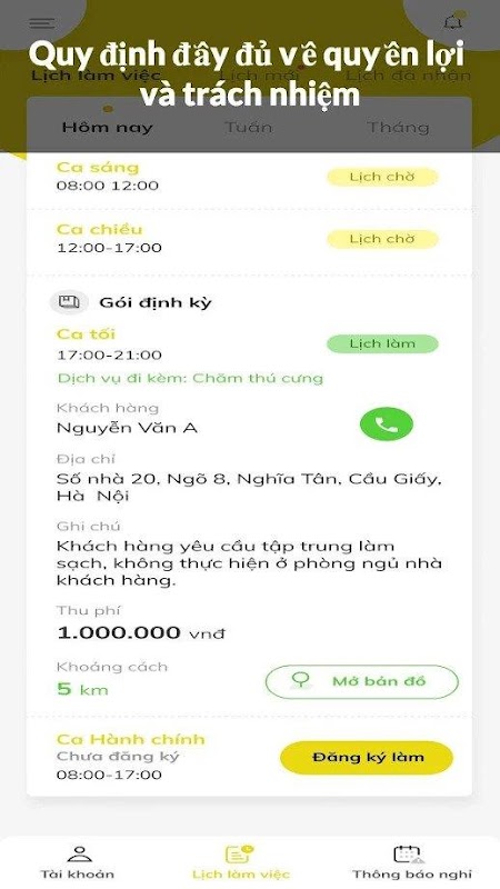 4. Được phát đầy đủ bộ dụng cụ phục vụ công việc gồm túi xách, tạp dề, khăn, bao tay, hóa chất tẩy rửa …