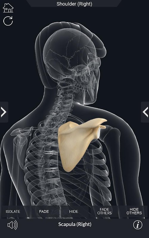 يمكن للمستخدم تحديد الجزء الخارجي من الهيكل العظمي لعرض اسم للجزء أو المعلومات ذات الصلة القراءة.