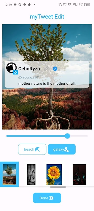 تطبيق يمكنك من خلاله كتابة تغريدات مخصصة مثل علامات الاقتباس وإضافة شارة زرقاء/شارة تحقق وتغيير صورة المستخدم وصورة الخلفية والتقاط لقطة شاشة للنتيجة لمشاركتها مع أصدقائك.