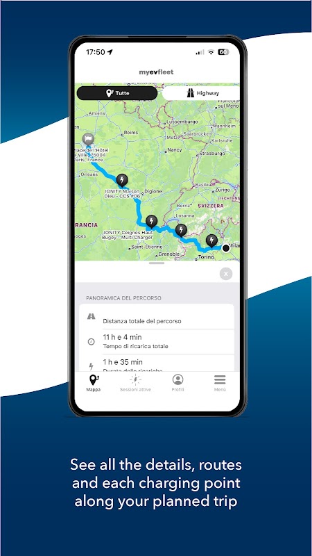يوفر تطبيق myevfleet معلومات كاملة ودقيقة وحقيقية لتحسين تجربة الشحن لديك. بالإضافة إلى ذلك ، فإنه يحدد الموقع الجغرافي لجميع نقاط الشحن في أوروبا للسيارات الكهربائية ، ويرشدك إلى وجهتك بفضل وظيفة الملاحة المساعدة ويسمح لك بجدولة إيقاف الشحن وفقًا لاحتياجات عملك. يعرض myevfleet أيضًا جميع محطات الشحن على الطرق السريعة الأوروبية من خلال الفلتر في الأعلى.
