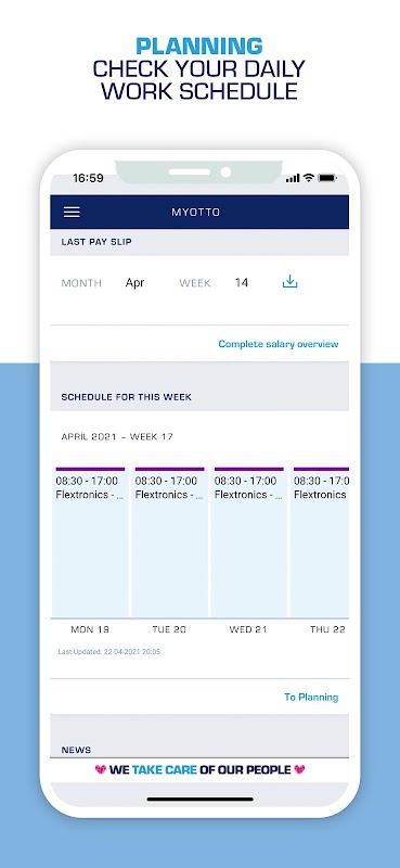 في OTTO Work Force ، نحن نعتني بموظفينا! يتضمن ذلك جعل عملك اليومي أسهل ما يمكن. بدء العمل في هولندا لقوة عمل OTTO ؛ ثم قم بتنزيل تطبيق myOTTO لتحصل على كل ما تحتاجه مباشرة على هاتفك المحمول. يتوفر باللغات الهولندية والإنجليزية والبولندية والسلوفاكية.