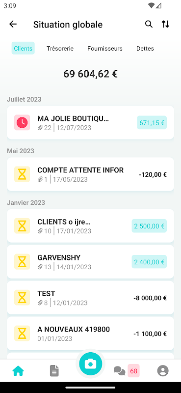 بفضل MyUnisoft ، يمكنك تصور الشخصيات الرئيسية الخاصة بك على لوحة القيادة ، ومعرفة بالتفصيل العملاء المتفوقين وموردي الديون