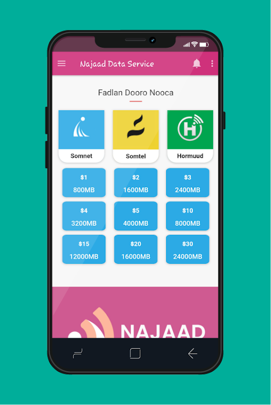 Ka iibso Najaad Data Service App xirmooyinka Somnet Data oo Raqiis ah