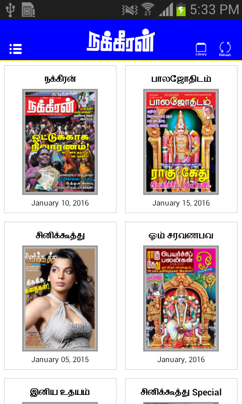 The Nakkheeran e-Magazine Store for the Global Tamilian, giving access to their seven beloved Nakkheeran Magazines. Download and read single issue or subscribe to your favorite magazines. Enjoy the magazines articles just as they do in nakkheeran.in, thus connecting the Tamilian on the move, through his devices.