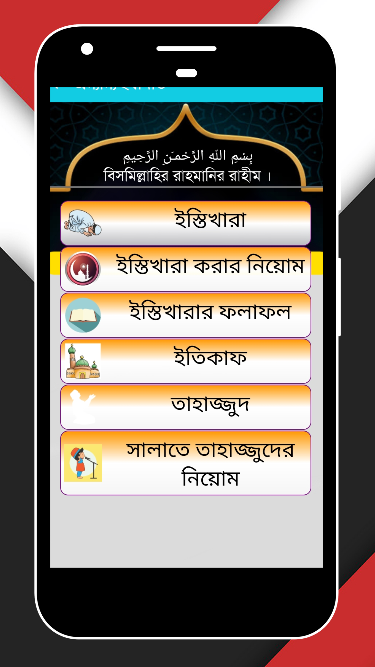 Namaz shikkha bangla هو التطبيق الأكثر روعة باعتباره برنامج نماز shikkha. إذا كنت ترغب في شراء نماز shikkha boi من مكتبة ، فعليك تغيير قرارك الآن للحصول على Namaz shikkha bangla boi. ربما سمعت عن نوراني نماز شيكخا بوي أو البنغالية ناماج شيخا. نحن نطور تطبيقنا ليقدم لك Sohih namaj shikkha و namajer niom و Namajer Sura و Namajer niyot والسورة الصغيرة للنماز والسورة البنغالية الصغيرة أيضًا.