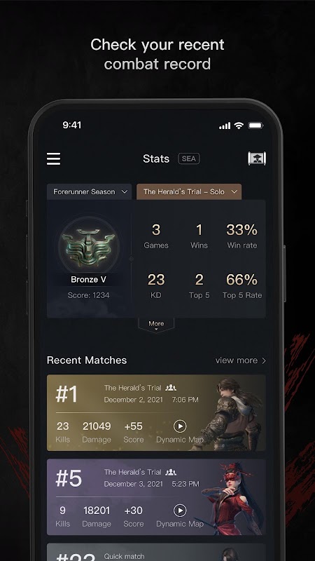 إحصائيات المعركة — قم بتحليل بياناتك التاريخية ، واطلع على التفاصيل من المباريات الأخيرة ، والأسلحة والأبطال الأكثر استخدامًا أيضًا. امنح نفسك ميزة تنافسية لمساعدتك في الوصول إلى Asura Rank في وقت أقرب بكثير!