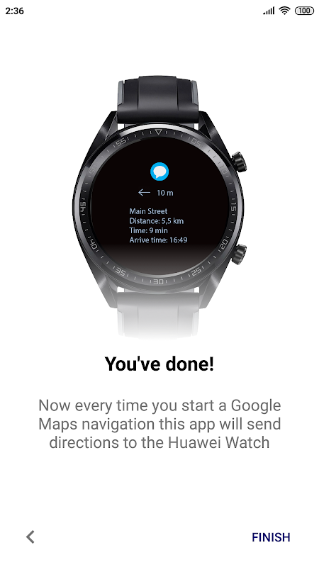 يتيح لك هذا التطبيق تلقي اتجاهات خرائط Google إلى Huawei Band 2 Pro و Band 3 Pro و Band 4 Pro و Watch GT و Watch GT2 و Watch GT2 Pro و Watch Fit و Honor Band 3 و Band 4 و Band 5 و Watch ES و Watch GS و Watch و Magic Watch 2.