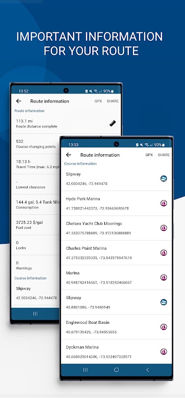 تخطيط الطريق من رصيف إلى رصيف، وبيانات الطقس الحية، والرياح، والمد والجزر، وارتفاعات الخلوص، والمراسي، والمراسي والأرصفة، وأخبار الشحن الداخلي، والمنحدرات المنزلقة، ونظام AIS، ومستويات المياه، ومحطات تعبئة المياه - من الآن فصاعدًا، تحتاج إلى تطبيق واحد فقط. تأخذ NavShip أيضًا سرعات تدفق العديد من المسطحات المائية في الاعتبار عند التخطيط لرحلتك وتحذرك إذا لم يكن من الممكن السفر بقاربك.