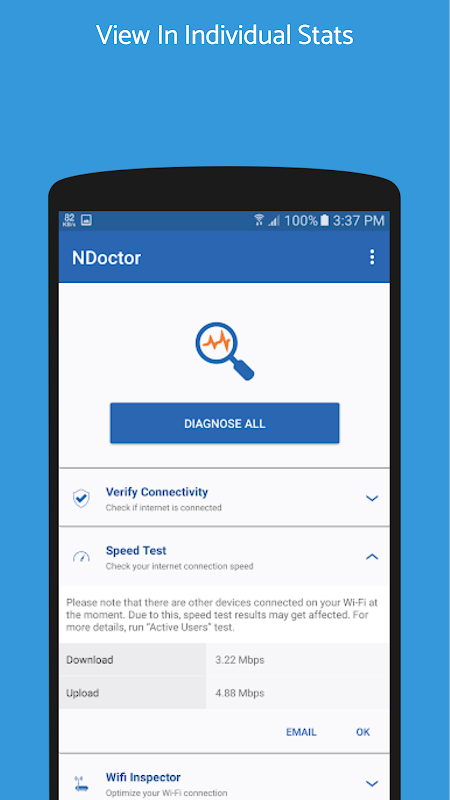 NAYAtel NDoctor هو التطبيق التشخيص الحرة التي يمكن أن توفر فهما أفضل للشبكة الخاصة بك وتساعد على تحسين ذلك الأداء الأمثل. استخدام NAYAtel NDoctor لتحسين تجربة الإنترنت الخاص بك. NDoctor يأتي مع الميزات التالية: