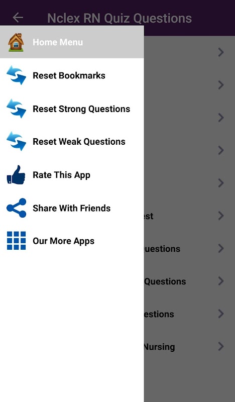 NCLEX-RN Quiz App تمنحك ميزات رائعة تسمى Strong & Weak Questions لتتحقق من ما هي أسئلة STRONG & WEAK تعتمد على درجاتك.