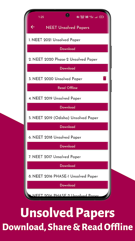 يسمح هذا التطبيق للمستخدم بتنزيل الأوراق غير المحلولة NEET في الجهاز حتى يتمكنوا من طباعتها واستخدامها كنسخة مطبوعة للتدرب على اختبار NEET 2022.