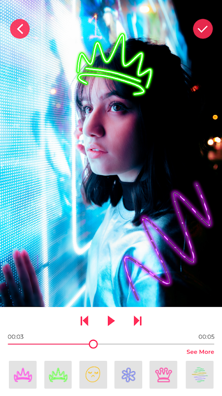 Neon Scribble Animation effects, is a free glowing video editor app to apply scribble animation effects to your videos, offers a wide range of filters and effects and helps you with drawing neon brushes on your videos. The super user-friendly interface enables you to become a professional video editor without having to go through a complicated process.