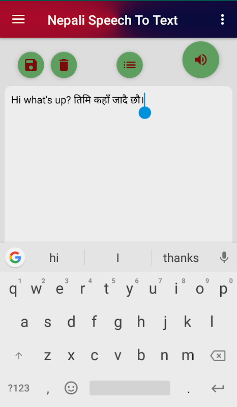 Nepali Speech To नेपाली Text ~ Speak in Nepali App is easy Google Nepali Speech to Text. Speak out any Words and Sentences in Nepali and it will be written in Nepali Text. You can save your speech text. Copy to clipboard. Edit, Delete and Share.