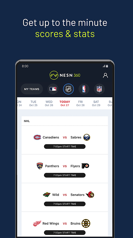 . إمكانية الوصول المباشر إلى NESN وNESN+ على مدار 24 ساعة طوال أيام الأسبوع