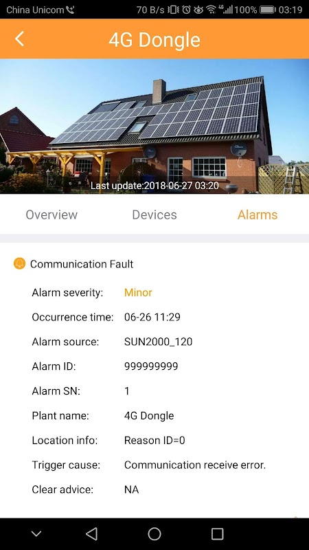 NetEco APP: Remotely monitors the KPI data such as energy yield and income as well as alarm information of inverters.